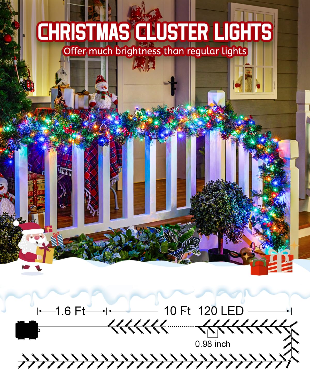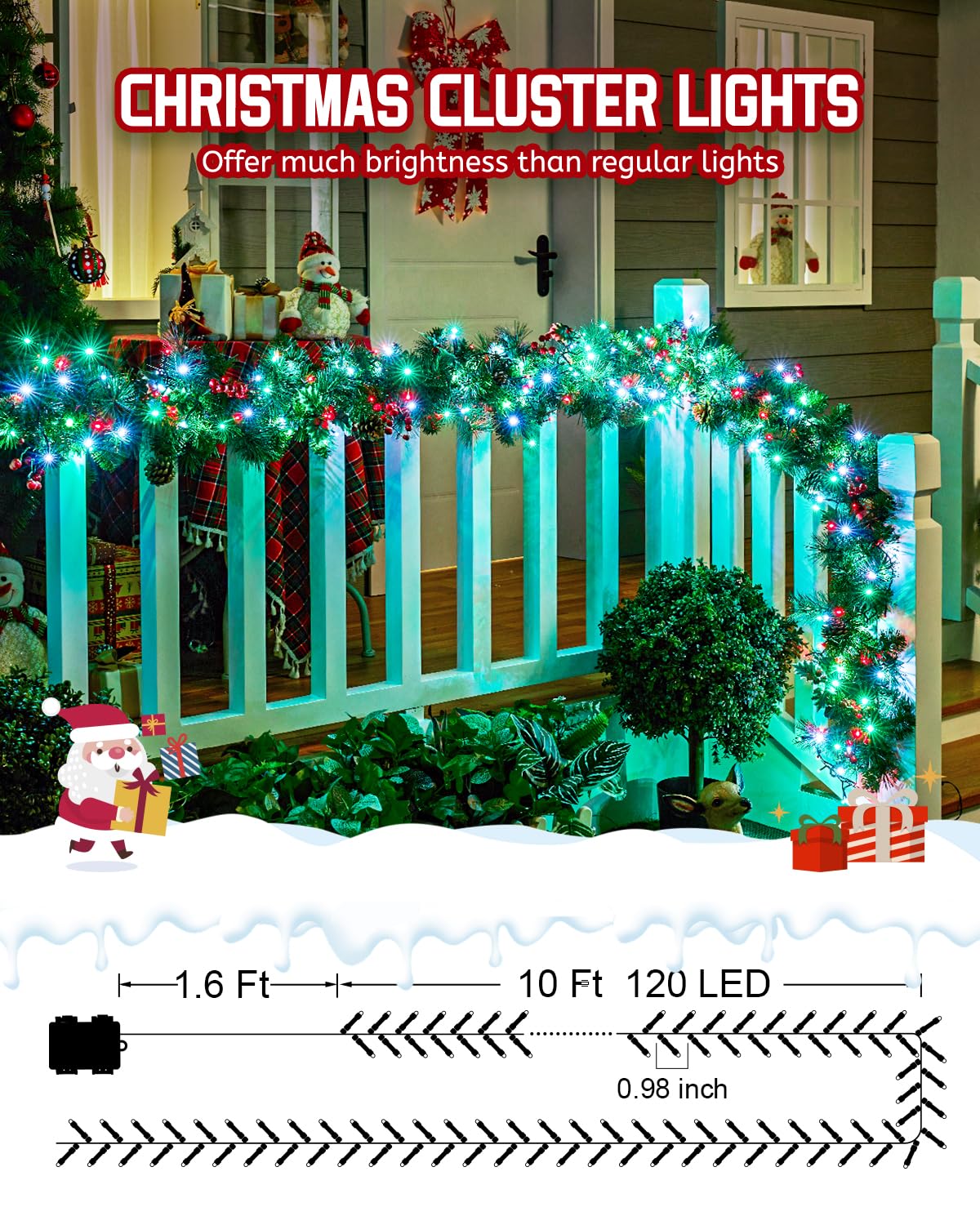 【Battery Operated Halloween String Lights】These orange and purple cluster lights, powered by 3 AA batteries (not included), span 10 feet and feature 120 bright LEDs. The black wiring and vibrant LED bulbs create a festive atmosphere, ideal for Halloween decorations and various occasions