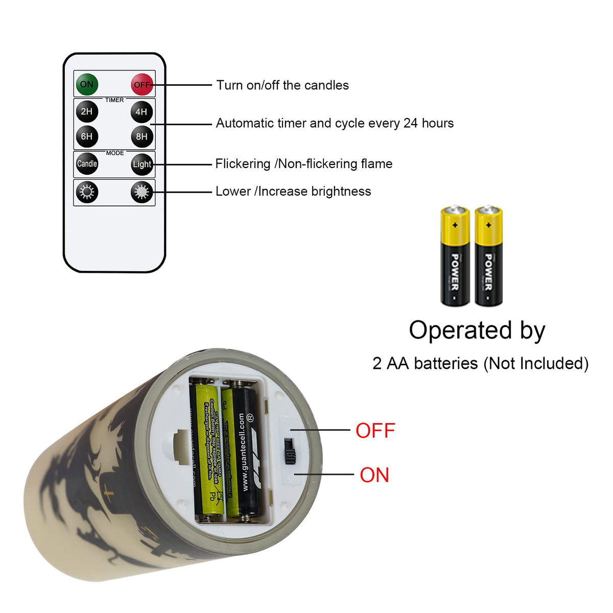 Crafted from high-quality, unscented real paraffin wax in a classic cream color, these flameless candles feature a realistic flickering flame effect that mimics the ambiance of real candles—without the mess or safety hazards. Each candle measures 3 inches in diameter and 6 inches in height and requires 2 AA batteries (not included).