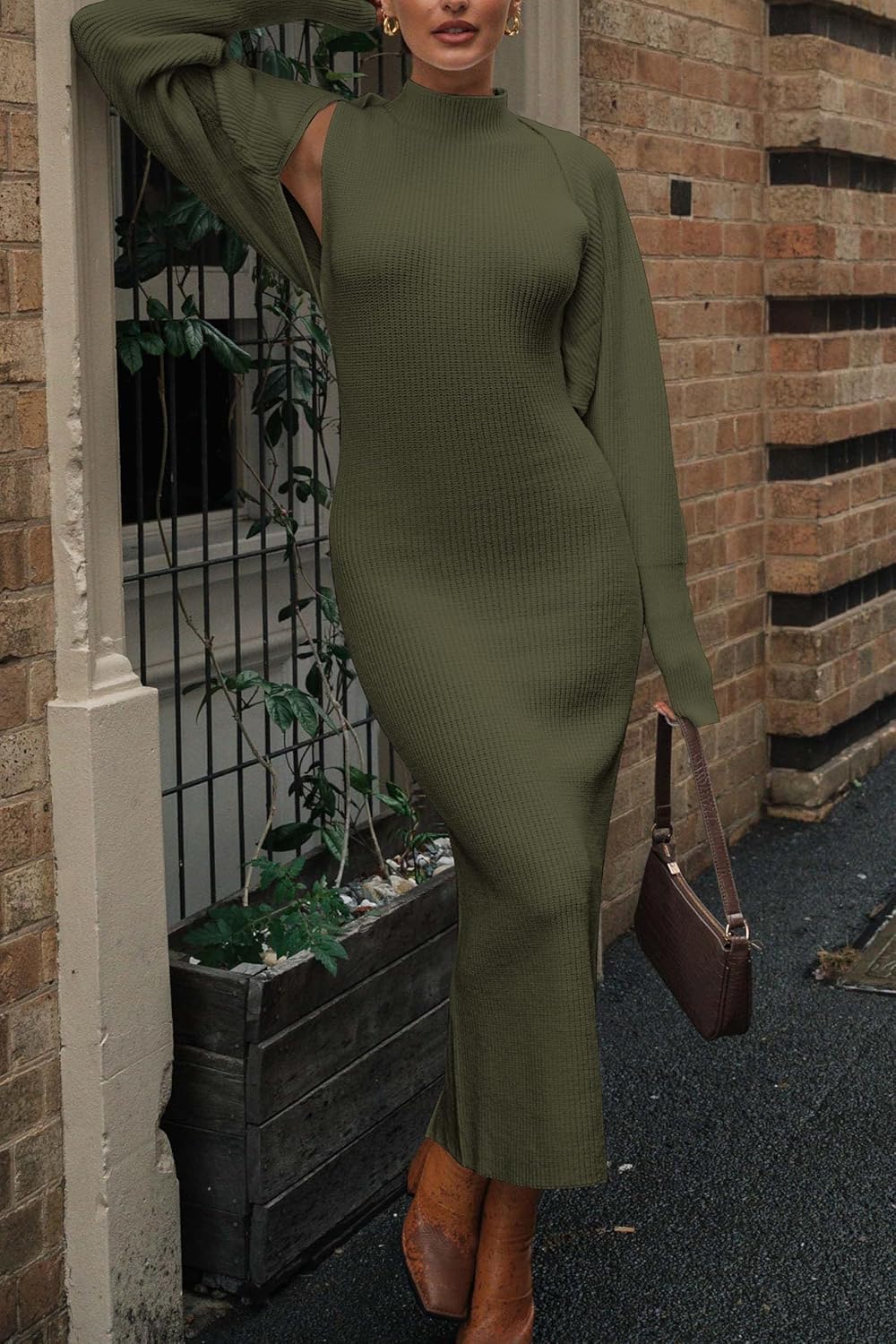 DETAILS: Mock Neck Maxi Tank Dress Provides Extra Warmth During Colder Months, Bodycon Dress With Slit Helps To Show Off Your Curves And Accentuate Femininity. Cropped Cardigans For Women With Batwing Sleeve Enhance The Cuteness, Make It Easy To Shape A Trendy And Relaxed Look